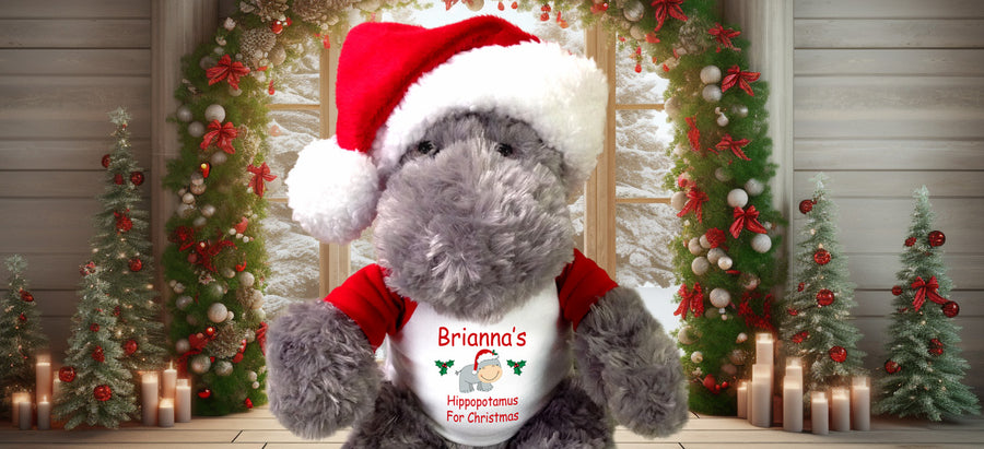 Send warm, fuzzy Christmas hugs with an adorable personalized teddy bear or other Stuffed animal. Know someone who wants a Hippopotamus for Christmas? We have those too! Our Christmas animals have a variety of choices for shirt designs and can be personalized with a name. Many animals also come with a Santa hat.
