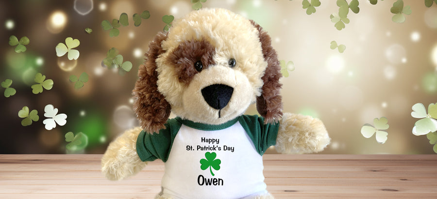 Whether you're looking for a fun St. Patrick's Day Gift or just want to wish someone good luck, a personalized teddy bear or stuffed animal makes the perfect lucky charm! Choose one of our cute animals and personalize it with any heading and name.